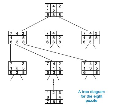 In the above figure, the nodes are depicted as puzzle configurations.