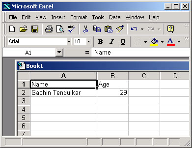 obWS.Cells(2, 1).Value = "Sachin