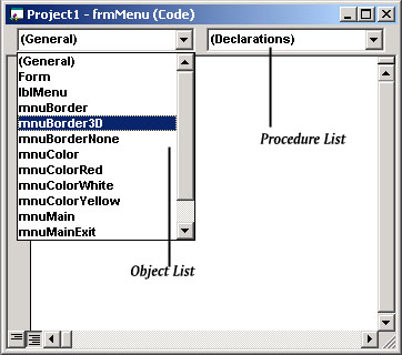 the code from the Object list. Figure 6.7 shows